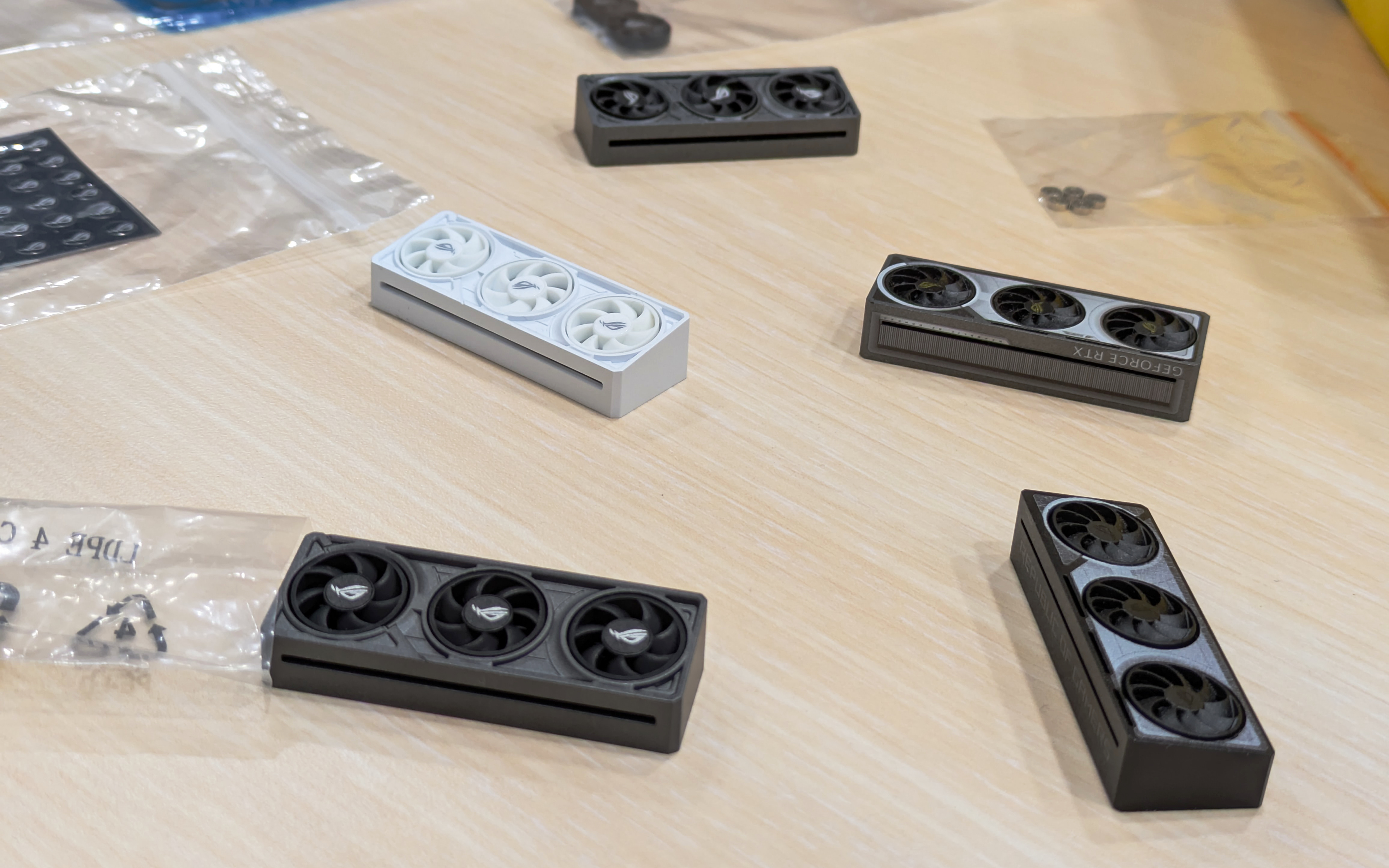 Initially, several prototypes were made in order to find a feasible manufacturing process best mimic the silhouette of the graphics card, without sacrificing too much quality.